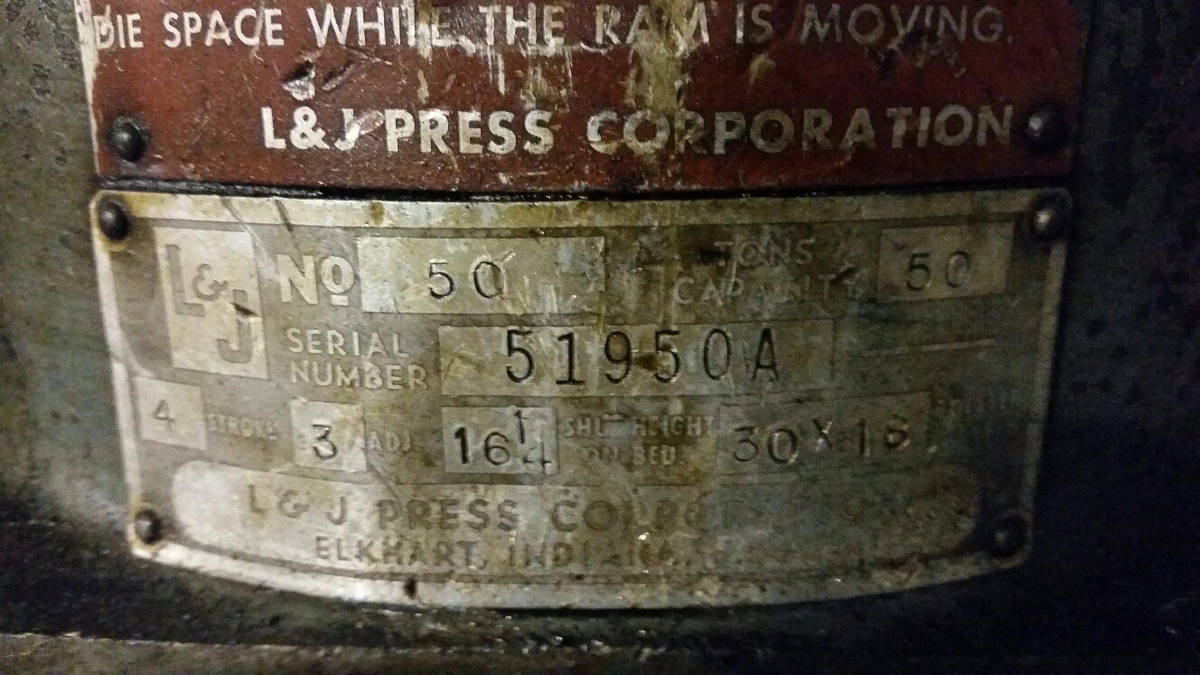 (1) PREOWNED L & J PRESS COMPANY OBI PRESS, MODEL 50