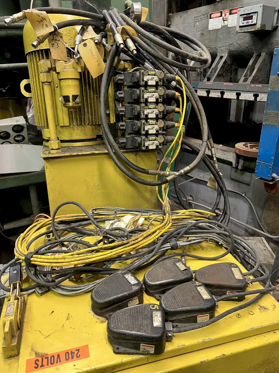 1 PREOWNED ENERPAC 5-STATION PRESS SYSTEM, HYD PUMP AND 15HP MOTOR, YEAR: 1999