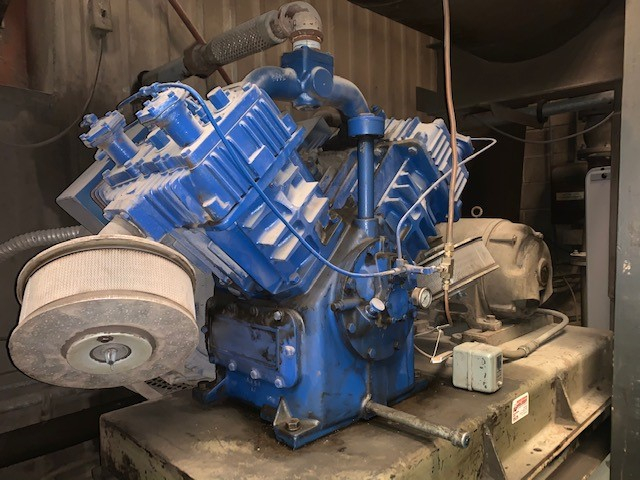 (1) PREOWNED QUINCY AIR COMPRESSOR, V PISTON, MOUNTED ON BASE, MODEL #: 5120, S/N: 850615L