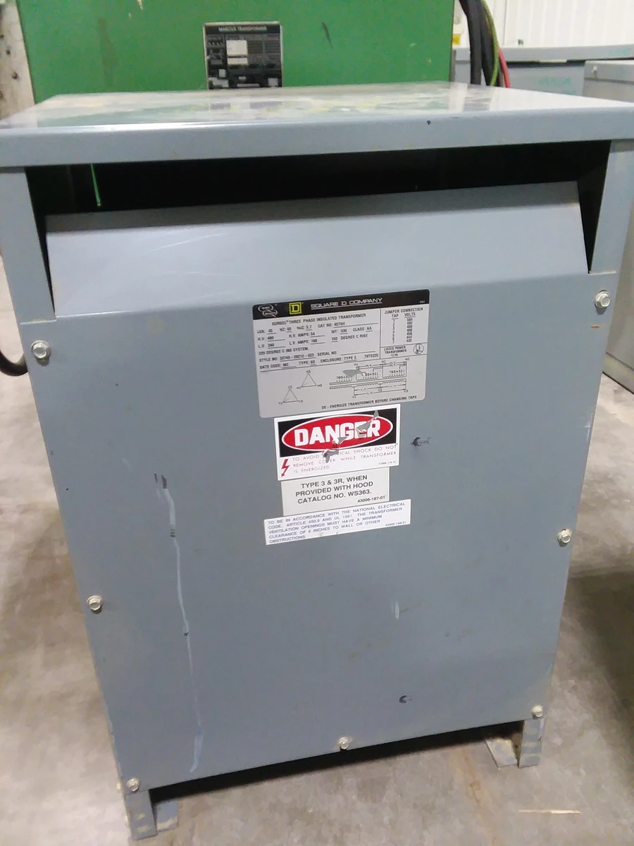 (1) PREOWNED SQUARE D THREE PHASE TRANSFORMER, KVA 45