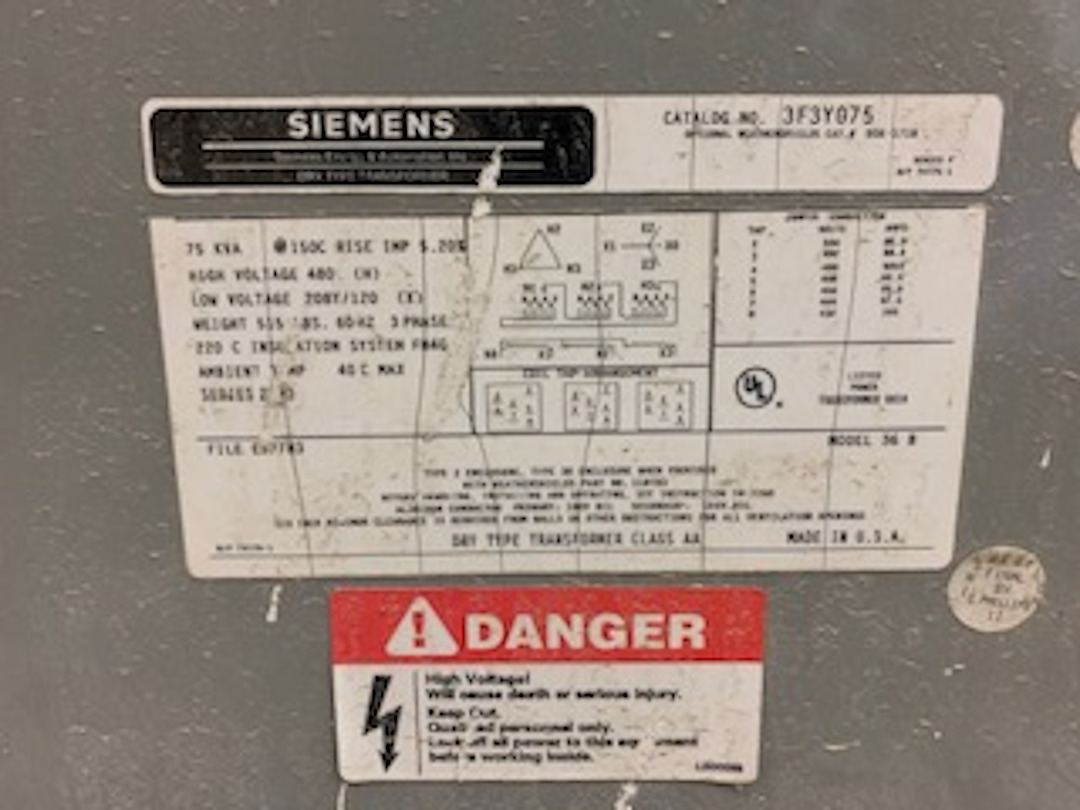 1 - PREOWNED SIEMENS TRANSFORMER, MODEL #: 36B, SERIES: 2093, CATALOG #: 3F3Y075