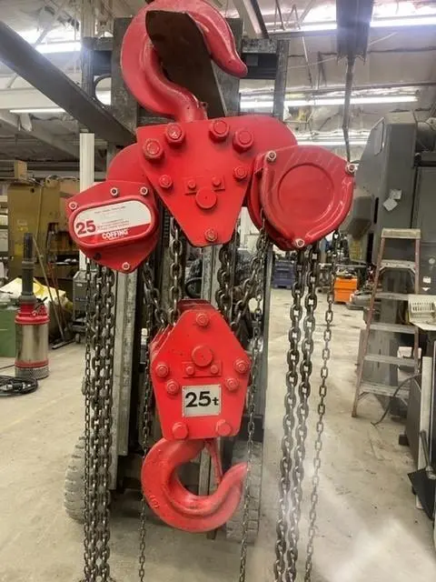 2 - PREOWNED COFFING 25-TON CHAIN HOIST, MODEL #: LHH, S/N: XX 0005