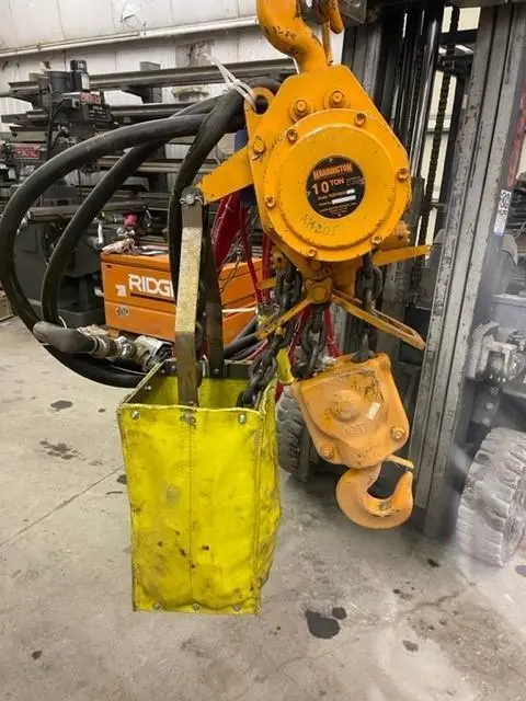 1 - PREOWNED HARRINGTON 10-TON PNEUMATIC CHAIN HOIST, MODEL #: TCR10000, S/N: 6A08