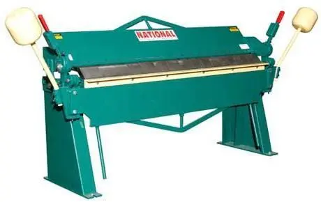 National offers four heavy duty box and pan brakes made in the U.S.A. Standard with heavy body construction, precision bearings on the apron, two large cast iron counterweights and apron stop for repeat bends. The National name means quality.