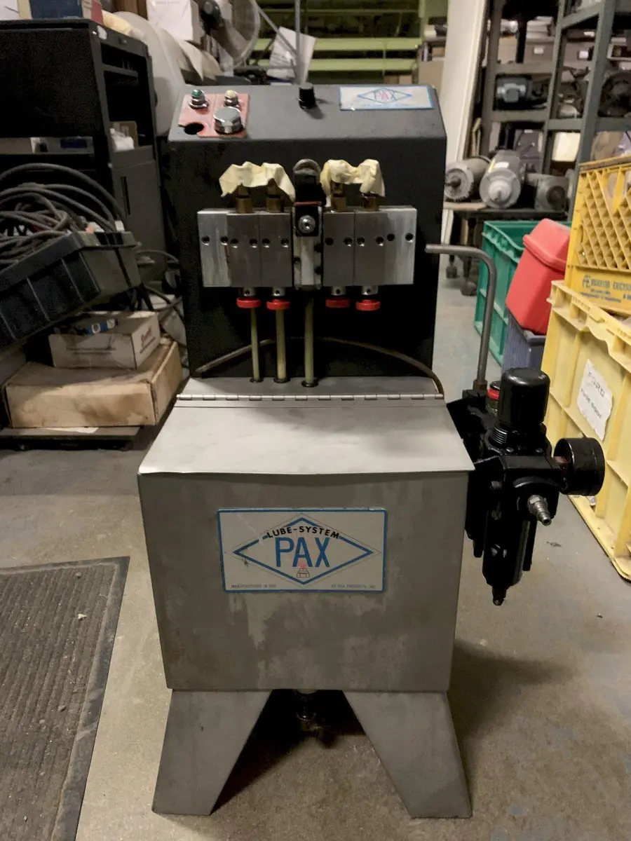 (1) PREOWNED PAX PRE-PRESSURIZED LUBRICATION SYSTEM WITH 5 GALLON RESERVOIR, MODEL #: 5-6, S/N: 7950