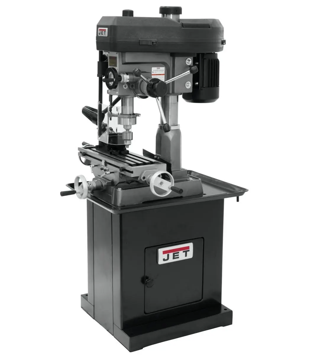 Mill drills are a lighter alternative to a milling machine. These combine a belt driven drill press with the dual coordinate abilities of the milling machine's table for flexibility and efficiency. A locking collet prevents the cutting tool from falling away from the spindle when lateral forces are experienced against the bit. Although light in construction, the JMD Milling Drilling Machines possess the advantages of space-saving versatility, affordability and light machining capability.