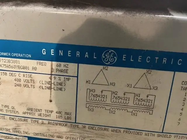 1 - PREOWNED GENERAL ELECTRIC 15 KVA TRANSFORMER, MODEL #: 9T23B3881